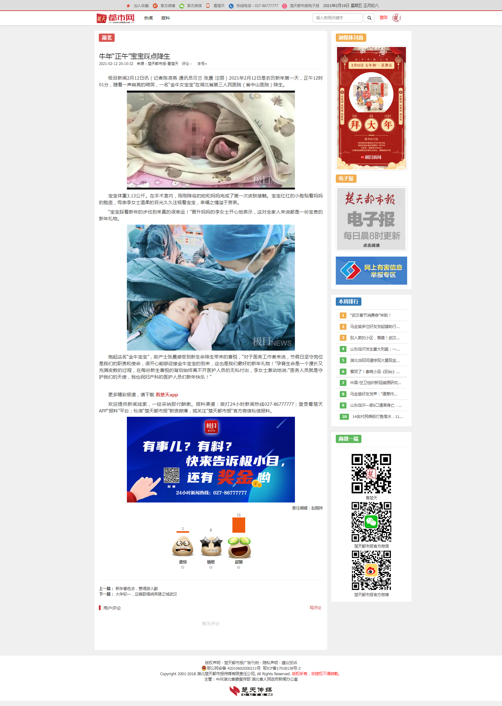 【楚天都市网】牛年“正午”宝宝踩点降生