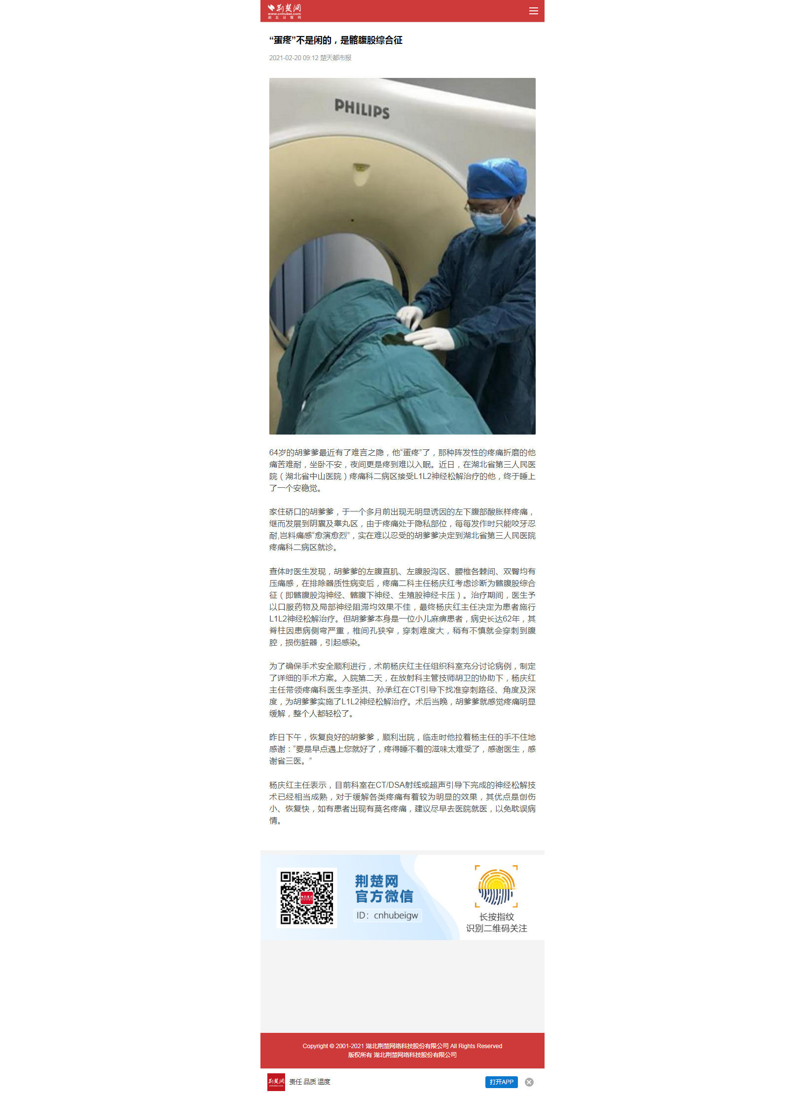 【楚天都市报】“蛋疼”不是闲的,是髂腹股综合征 发布时间:2021-02-20 来源:转载自楚天都市报 上一篇:【长江日报】逆流而上的人群里,有我父母的身影 下一篇:【楚天都市报】三八节临近“女生痛”引热议,专家支招缓解痛经