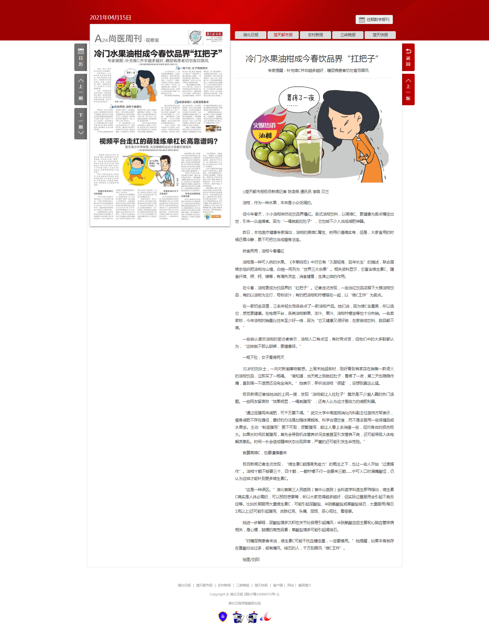 【楚天都市报】冷门水果油柑成今春饮品界“扛把子” 专家提醒:补充维C并非越多越好,糖尿病患者切勿盲目跟风 发布时间:2021-04-21 来源:转载自楚天都市报 上一篇:【楚天都市报】航母级手术室入住省第三人民91porn 下一篇:【武汉晚报】双手总是湿哒哒 巧施“魔法”变干燥 妙龄少女告别“水手”生活
