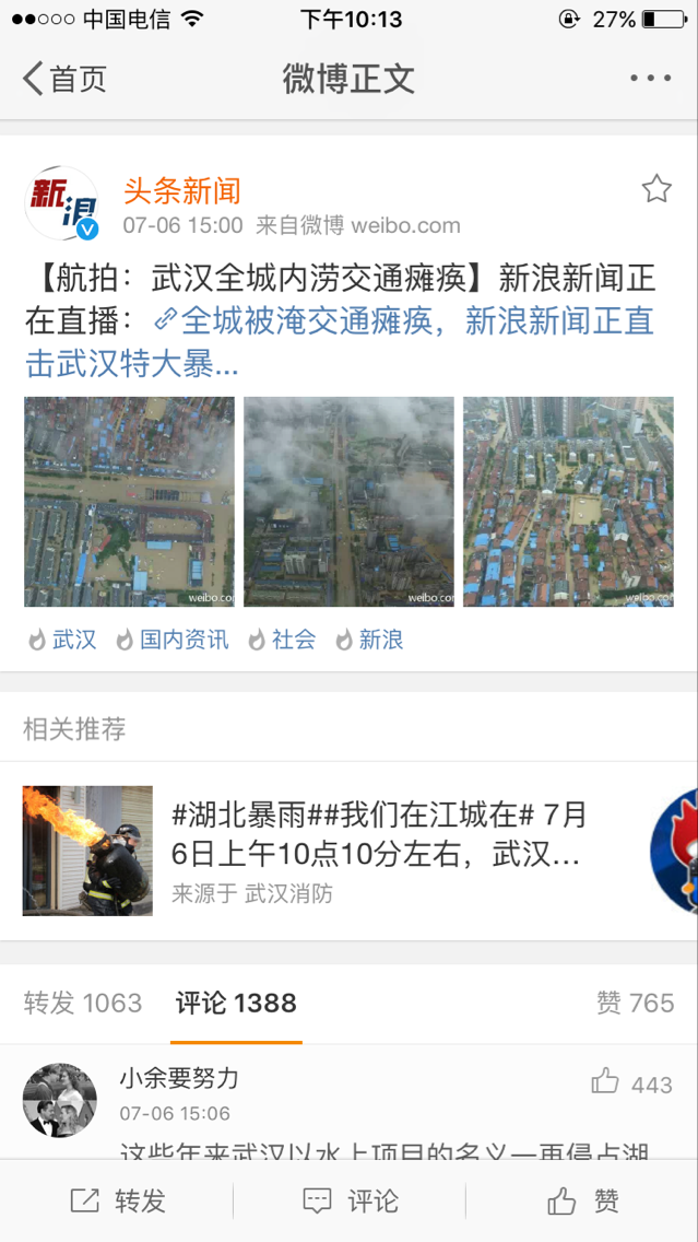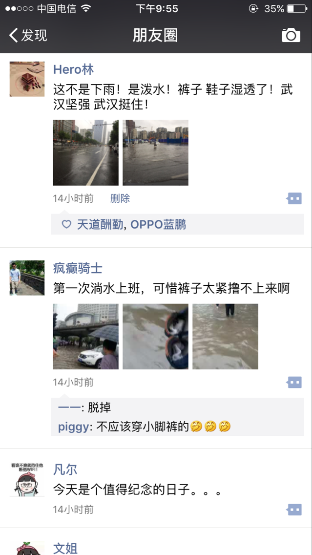 这场暴雨造成武汉市的交通接近瘫痪,许多企业、工厂纷纷放假来应对此次危机。