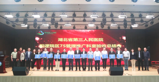 阳逻院区执行管理团队为第三批7S管理推广科室授责任牌。第三批推广科室是重症医学科、麻醉科(手术室)、急诊科、超声影像科、检验科、健康管理(体检)科、120急救转运中心、病理科、支助中心、消毒供应中心、口腔科、眼科、心电图室、门诊各诊室。