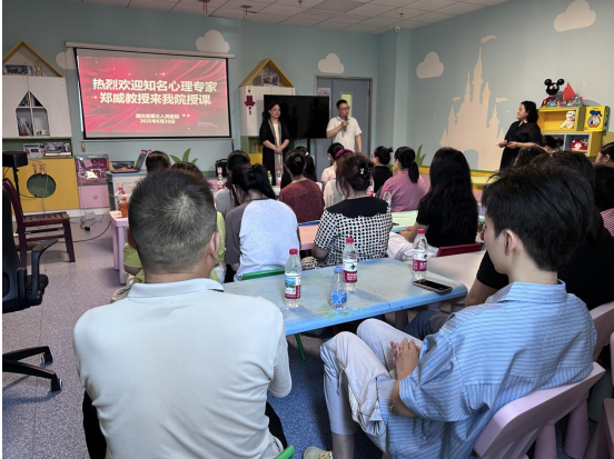 为进一步深化特殊教育家庭支持体系建设,提升家长应对孩子教育过程中可能出现的心理问题的能力,6月30日,在硚口区总工会的关心支持和91porn (湖北省中山91porn )工会副主席、工会办公室主任周宇光的积极联络下,特邀中国心理协会高级督导师、湖北警官学校教学名师郑威教授,为儿童康复科特殊儿童家长举办了一场主题为“爱与成长的修行”的心理辅导活动。此次活动旨在关注特殊儿童心理健康发展,缓解患儿家长们的焦虑、抑郁情绪,助力患儿家庭走出困境。本次活动由儿童康复科牵头负责人杜翔主持。