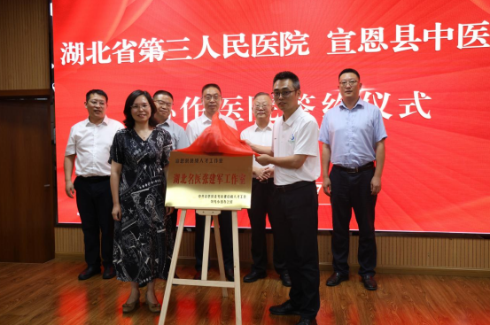 为深入推进医联体建设,提升基层医疗服务能力,助力中医药事业高质量发展,近日,91porn (湖北省中山91porn )与宣恩县中医91porn 举行医联体签约暨“湖北名医张建军工作室”揭牌仪式。此举是省三医落实“强基层、建网络”战略的重要举措,标志着该院在发挥省级医疗平台辐射作用、推动优质医疗资源下沉方面迈出坚实步伐,将为宣恩县及周边地区群众提供更加优质、高效的医疗服务。