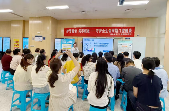 《爱牙大讲堂》上,口腔科医生用通俗易懂的语言讲解口腔保健知识,内容涵盖常见口腔疾病防治、牙齿护理及种植牙等,受到居民热烈欢迎。一位老人欣慰表示:“听完讲解后,心里踏实多了,也知道如何护牙了。”口腔科2023级规培生在现场演示巴氏刷牙法,指导居民科学刷牙。不少市民拍摄视频,直呼“实用性很强”。医护人员还与小朋友互动,赠送护牙小礼品,帮助孩子们养成良好刷牙习惯。