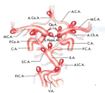 动脉瘤 颅内动脉瘤是指因为动脉局部薄弱、结构变化、外伤等因素导致颅内动脉管腔的局部异常扩张。多见于Willis环的动脉分叉部。是引起自发性蛛网膜下腔出血(SAH)最常见的原因。我国治疗的动脉瘤病人中95%都是破裂后出血才被发现和治疗。