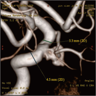 颈内动脉创伤性假性动脉瘤覆膜支架治疗前后(三维像是术前) 右侧颈内动脉后交通动脉瘤栓塞术后完全闭塞