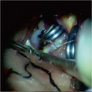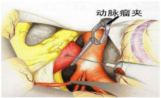 弹簧圈栓塞后造影示左椎动脉夹层动脉瘤消失, 左椎动脉、 多发动脉瘤夹闭术前、术中