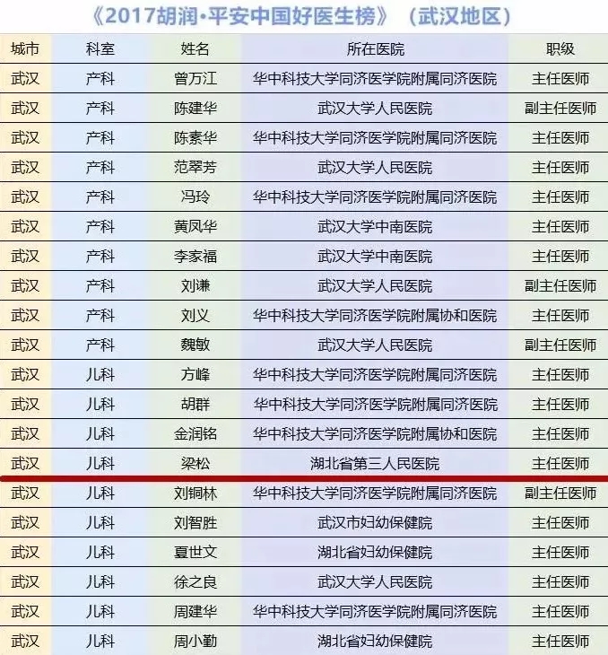 近日,胡润研究院与平安好医生联合发布第一届《胡润·平安中国好医生榜》,湖北290名医生上榜,上海壹博医生集团签约专家儿童脑病康复中心主任、主任医师、梁松教授榜上有名!