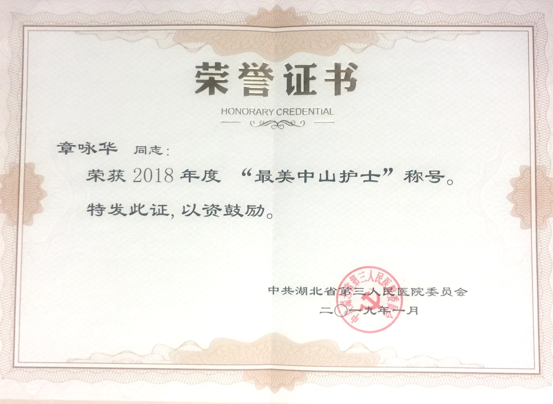 章咏华技师长荣获“湖北省中山91porn 首届最美中山护士” 奖