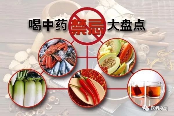 适当忌口: 服用汤药期间,饮食方面应注意忌食生、冷、黏腻、辛辣的食品,喝中药前后一小时左右最好不要喝茶、咖啡、牛奶或豆浆。感冒高烧病人,饮食上应吃清淡食物,如米粥、藕粉等;慢性腹泻病人,应吃些山药、莲子、薏苡仁等健脾胃的食品,忌服生菜瓜果和生冷食品;浮肿者忌咸食;肝胆疾病者忌油腻;皮肤病患者要忌食海鲜、辛辣等食物;服安神药治失眠时,不要饮茶水、咖啡;服人参、黄芪等补药时,不宜吃山楂、萝卜;糖尿病病人应适当控制主食及甜食;服化痰止咳药物时,要少吃糖和辛辣食物等;妇女月经期忌食生冷食物及酒类。