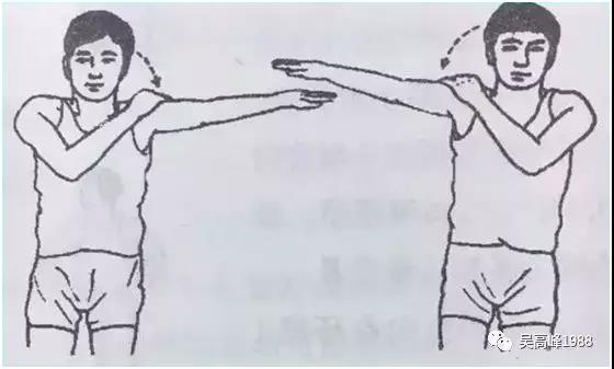 如此反复做完4个8拍后,收回预备动作。通过拍打左右肩峰三角肌、颈肌,可促进局部血液循环。