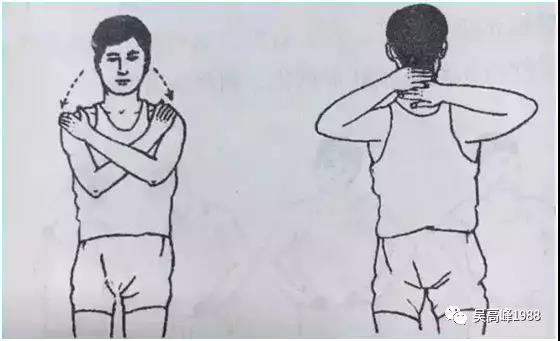 5、旋颈举臂摩圈运动