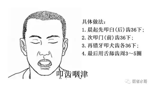 清晨睡醒,先闭目叩齿36下,咽津,既可防燥,又可填精。