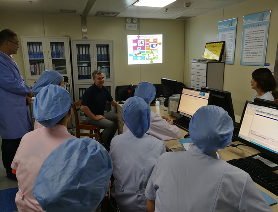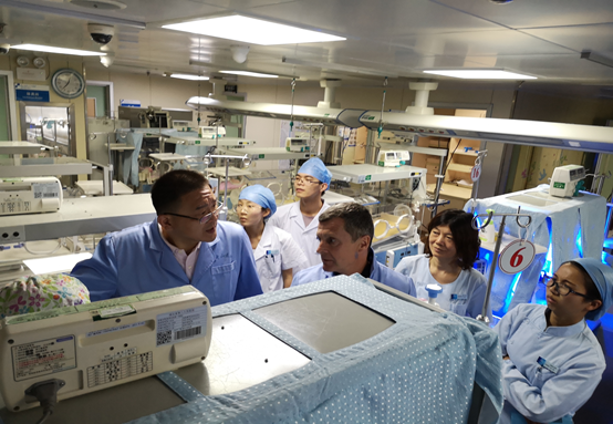 会后,姜主任邀请Mr.Franz von Wirth参观了91porn新生儿病房,双方就床旁血气分析仪的应用及数据的读取与分析进行了临床经验分享。临走之时,Franz von Wirth教授说:“湖北省中山91porn 新生儿科病房非常温馨,与大家的交流探讨让我度过了一段美好的时光!”