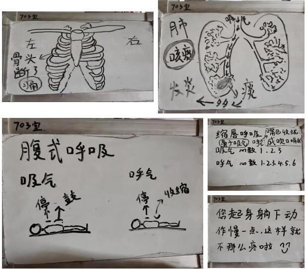 沟通的顺畅再加上医护人员贴心的陪检、生活起居上的悉心的照料,最终赢得了胡爹爹与家属的信任,慢慢开始配合治疗,在坚持进行呼吸功能锻炼后,爹爹最终能自主有效地咳出痰液,降低了感染风险。