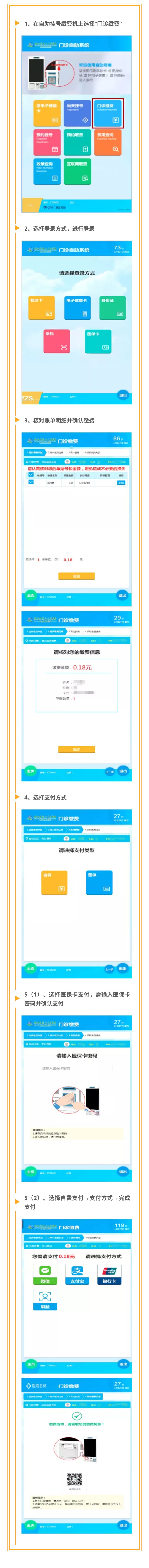 新门诊一楼、三楼、五楼均设有人工挂号缴费窗口,并配备导医人员,为患者提供就医指导服务。