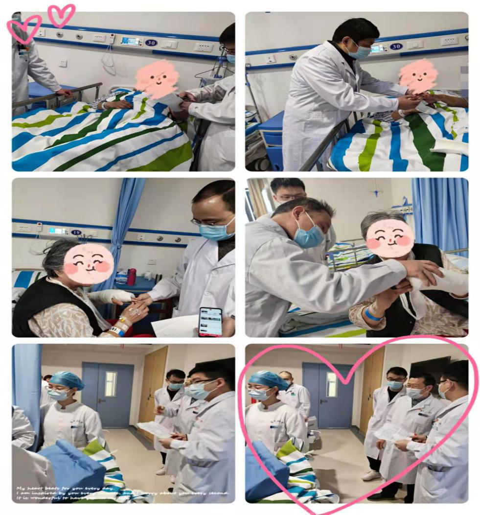 晨会完毕,各主任带领医疗小组到病房查看患者病情,耐心为患者答疑解惑