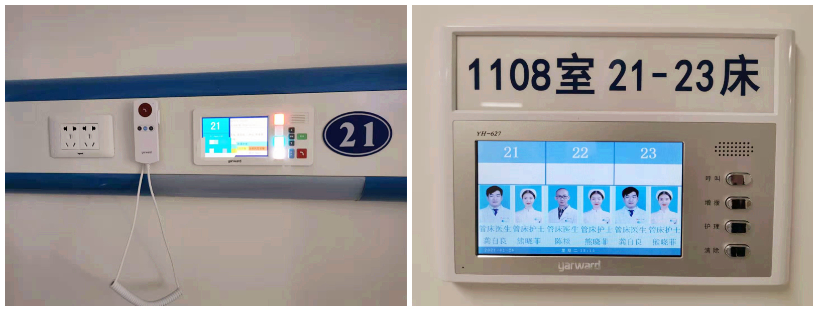 病区配备了更人性化的呼叫设备,床头卡信息、管床医生及护士信息均采用电子屏实时同步显示,患者可清晰了解自己管房医护人员的信息,医务人员也能更清晰掌握患者的治疗观察要点,提高医疗护理质量。