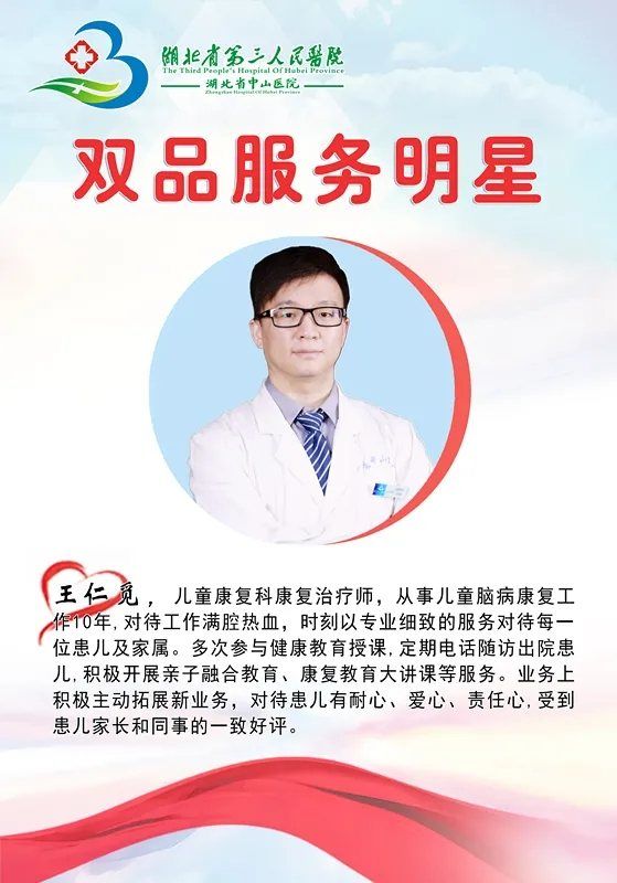 王仁觅老师非常擅长各种儿童康复的评价,特别是peabody精细运动发育评定,FMFM评定。并对特殊孩子做到了温暖,温馨及温情服务,积极践行医院“提升服务品质,打造服务品牌”双品服务理念,被评为2020年度双品服务明星。
