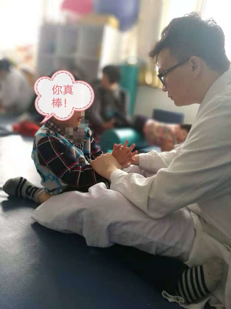 作为一名儿童康复治疗师,王仁觅老师每天都与孩子们朝夕相处,和孩子们在一起的时间远比和家人在一起多,工作中王老师也见证了无数的开心、坚强、哭闹和撒娇。曾经有一段时间,每天早上一开门,一定会有一个漂亮的小女孩递给他一张治疗单,并说:“早上好,王老师!”伴随着清脆悦耳的童声,孩子们一天的康复训练便揭开了序幕。上课时,老师们的“加油”、“真棒”、“坚持,马上就好了”……一声声鼓励,此起彼伏。康复训练是枯燥的,但也是快乐的,在这里唯一的选择就是坚持,只要不言放弃,他们终将会迎来最棒的自己!当然,也有年龄很小的孩子不愿意配合,王老师就会以游戏的方式来慢慢引导,每次完成一个动作,他就会很开心地赞美一句“哇,你怎么这么棒啊”!孩子们最喜欢被夸奖了,以至于后来有的孩子就习惯了,每次训练前,都要先和王老师说“夸夸我”、“点个赞”,而完成任务后还要来一通自夸“哇,我是最棒的!”