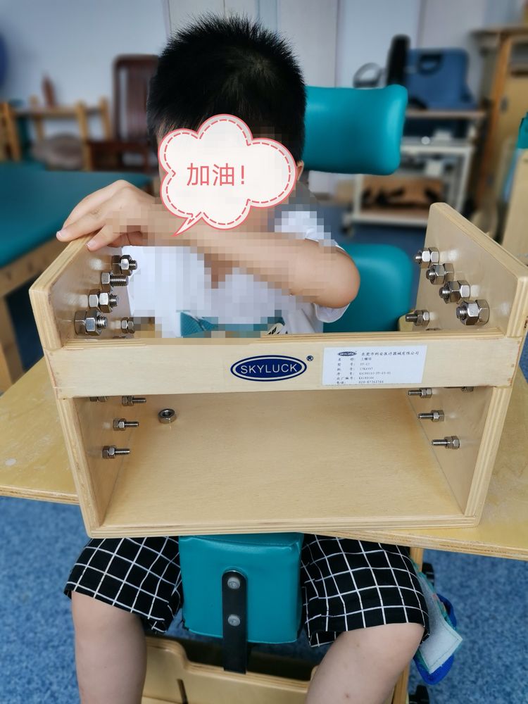壮壮今年5岁了,是 2017 年 5 月份开始接受作业治疗的,三年多来,妈妈带着壮壮每天都坚持来做康复治疗,可以说是风雨无阻。初来时,小壮壮双上肢肌张力很高,双手协调能力很差,尤其右侧大抓握都费力,生活上大部分依赖于家人辅助,家人认为这样的孩子就应该替他做任何的事情。可是作为康复治疗师,王仁觅老师深知过度照料对孩子康复带来的消极作用,所以见到小壮壮的第一天,他便尝试慢慢降低孩子这种过度的依赖,他先是从思想上和他沟通,每天都给小壮壮讲很多其他小朋友坚强勇敢的事例,并趁机刻意地夸奖他。王老师知道,这种“思想工作”对于一个特殊孩子的作用其实并不大,但他却想要坚持,因为他相信,孩子的心灵和老师的心愿说不定哪天就会碰撞在一起了!生活中的每一个动作,都是需要孩子们重复练习上百上千遍的,这其间的艰辛,也只有家长、孩子和治疗师可以体会得到。