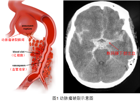 颅内动脉瘤破裂会导致蛛网膜下腔出血,约占自发性蛛网膜下腔出血的 75%-90%。动脉瘤破裂可能会突发剧烈头痛、呕吐、意识障碍、癫痫样发作、颈强直等症状。大约 40%的病人死于颅内动脉瘤首次破裂出血,20%-40%的病人在2周内会再次破裂出血,死亡率高达85%。