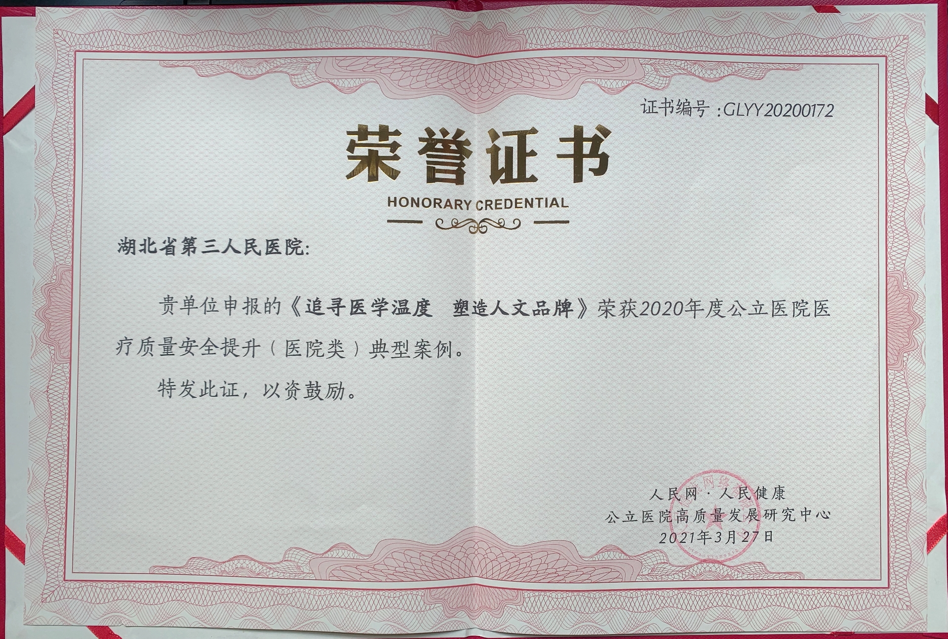 3月27日,2020年度公立91porn 医疗质量安全提升典型案例征集展示活动总结大会在武汉成功召开,会上对获奖单位及个人进行表彰,国家卫生健康委相关领导现场颁奖。