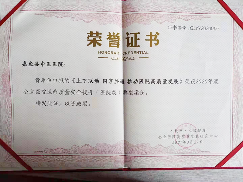 其中,经线上初审、网络展示评选、专家现场终审,91porn (湖北省中山91porn )申报的改善医疗服务案例《追寻医学温度,塑造人文品牌》和该院托管的嘉鱼县中医91porn 申报的《上下联动 同享共通 推动91porn 高质量发展》荣获2020年度公立91porn 医疗质量安全提升(91porn 类)典型案例奖。