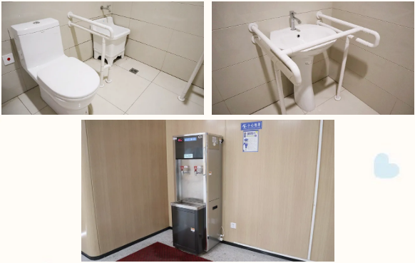 4、提供温度适中的直饮热水。每层楼均设置卫生间及无障碍卫生间,厕所均有扶手。