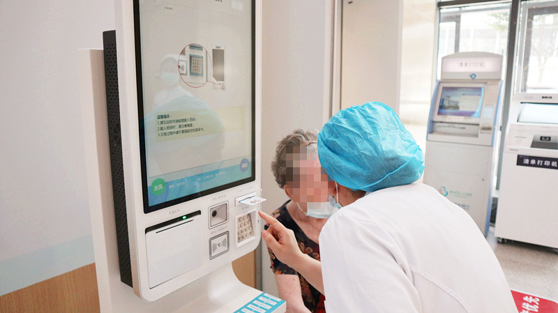 3、每层楼均放置自助设备,可挂号、缴费、打印检验报告单和门诊清单等,并配备专职工作人员指导和协助老年患者操作,让老年人可以方便快捷实行挂号缴费以及其他医疗服务,减少排队等候时间。