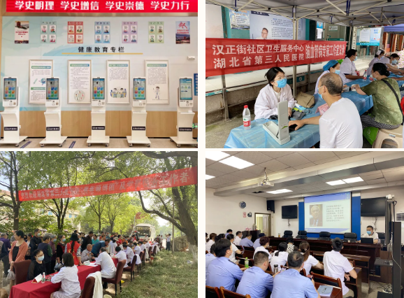 门诊大厅醒目位置设置健康宣教栏,定期更换健康宣教内容;每月均定期开展健康教育大讲堂;各专科定期、不定期举行义诊、健康讲座;经常性深入社区、居民区、公园等老年人集中的地方为老年人提供健康指导和医疗咨询。