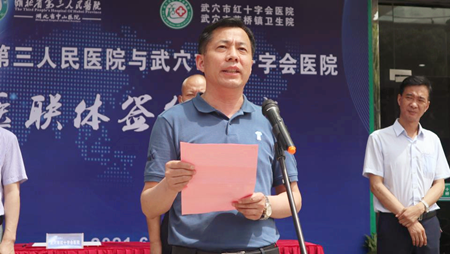 活动由武穴市花桥镇镇长杨志刚主持,他首先介绍了参会领导和嘉宾以及医联体签约的目的和意义,同时对参加活动的领导、专家表示诚挚的欢迎和衷心的感谢。