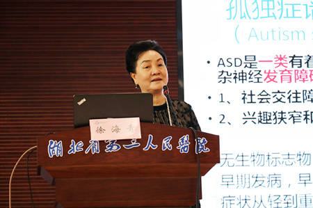 研讨会上,湖北省妇幼保健院主任医师及首席专家徐海青教授作题为《ASD儿童-睡眠-喂养-肠道问题家庭干预方法》的讲座