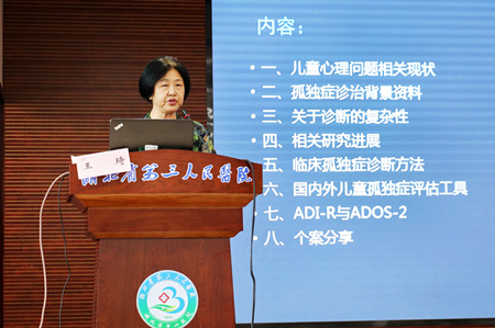 电子科大川西北地区儿童医学中心发育行为学术主任王琦教授作题为《孤独症诊断中的量表选择与应用》的讲座