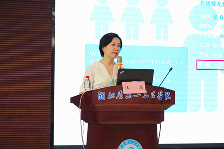 湖北省妇幼保健院儿保科主任、湖北省儿童发育行为中心办公室主任汪鸿教授作题为《孤独症儿童行为问题处理》的讲座