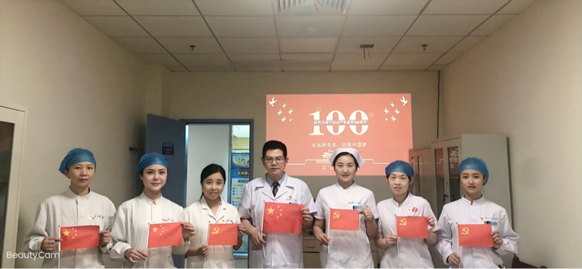 为纪念中国共产党成立100周年,6月23日,91porn (湖北省中山91porn )神经内科三病区在科主任葛林通、护士长刘芳的组织下,与患者朋友们一起在科内开展了庆祝建党100周年活动。