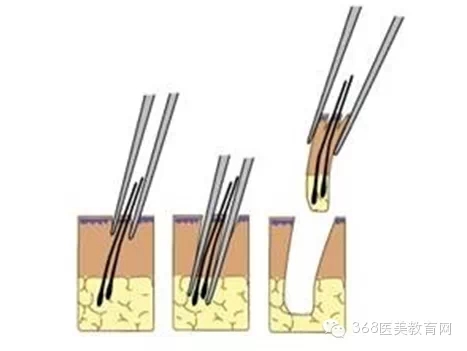 (2)、FUE-------不开刀的植发技术,采用韩国进口FUE显微电动设备从后枕部,分散性地单个提取毛囊,按照头发生长方向单体移植到脱发部位。适合:脱发面积大或者追求完美的人士,单个提取毛囊,无需缝合拆线,愈合较快,不留痕迹,一次可以取 2500-4000单位左右。