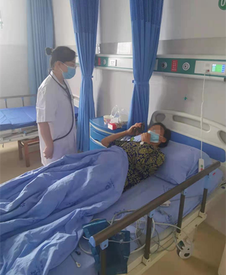 独自在家的老伴现在怎么样?小女儿一家现在在哪里?家里养的鸡是不是都被冲走了?一个个问题让婆婆心神不宁,在加上自己没有手机,也不记得家里人的电话,心里特别着急。江南芳医生在了解情况后,在病历本上找到联系电话,用自己的手机帮婆婆联系上了家属,听到熟悉的声音和家人平安的消息,婆婆很是激动,抹着眼泪向江南芳连连道谢,江南芳则安慰道:“您看现在都是好消息了,再不要伤心着急了,先把病养好,一家人平平安安的是最大的幸运。”