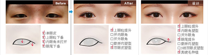 针对不同人的眼部生理结构,术前进行全面部整体个性化设计,采用介于切开法与埋线法之间的方法,创伤小、所需局部麻药少、消肿快,术后眼部自然无痕,为平坦的上睑增添一条靓丽的黄金分隔线,使眼睛极具动态美感,效果永久维持。中山美容为您塑造闪亮电眼。
