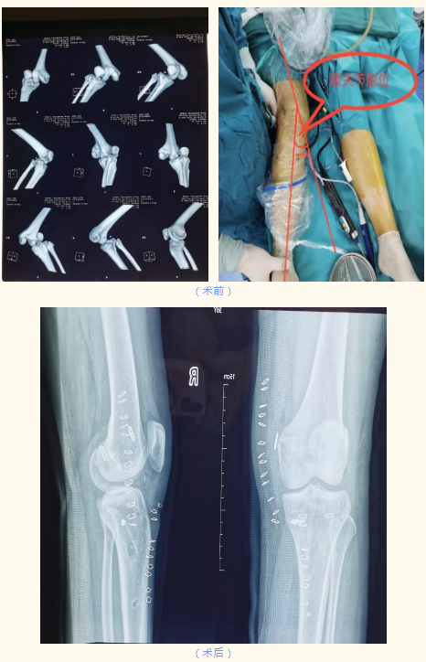 万昌涛立即决定安排急诊手术,帮助患者关节复位减轻其疼痛,仅用时20分钟,万昌涛与住院医师周亦楠就为患者完成了右膝关节脱位并韧带损伤复位术+胫骨结节骨牵引术,术后患者疼痛感明显缓解。
