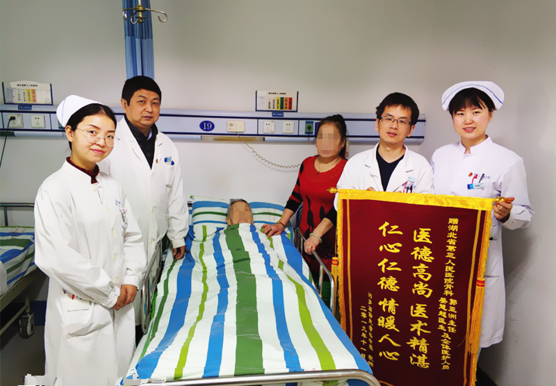 出院前,梁婆婆的家属为郭亚洲送来写有“医德高尚,医术精湛,仁心仁德,情暖人心”的锦旗,梁婆婆的儿子拉着郭亚洲的手不住地感谢:“我妈妈这么大年纪了不好治,真没想到她还能有再站起来的一天,真的非常感谢您!”