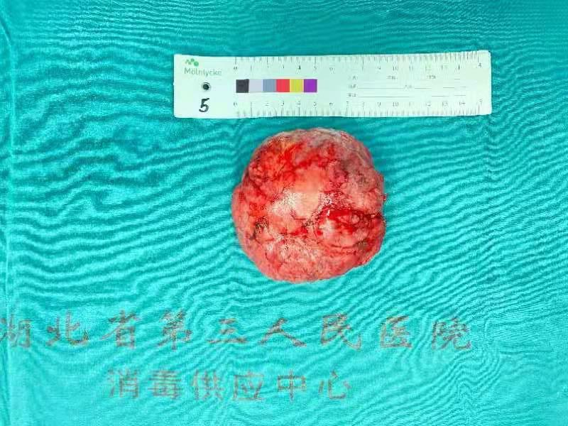 入院第三天,甲乳外科主任戚鹏为小雪行全麻下左乳腺体区段切除术,完整切除一大一小两个肿瘤,并且幸运的是,术后小雪的病检结果是纤维腺瘤,为良性肿瘤。