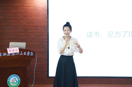 全国先进工作者肖芳向全院女职工发出了“玫瑰书香,悦读悦美”女职工读书活动倡议。