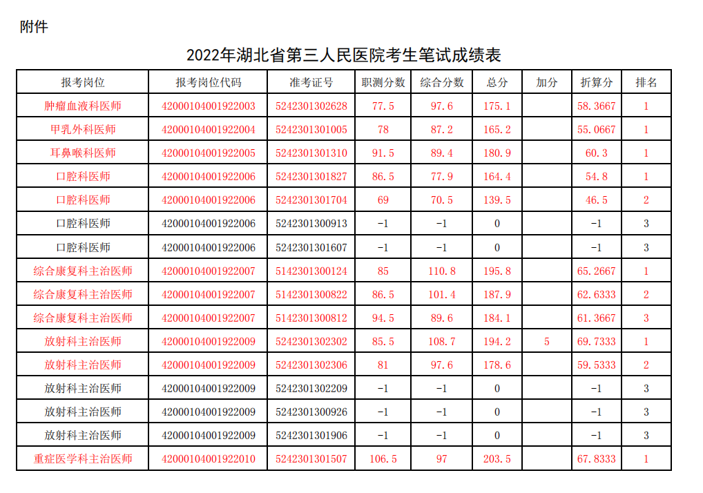 附件:2022年91porn 考生笔试成绩表