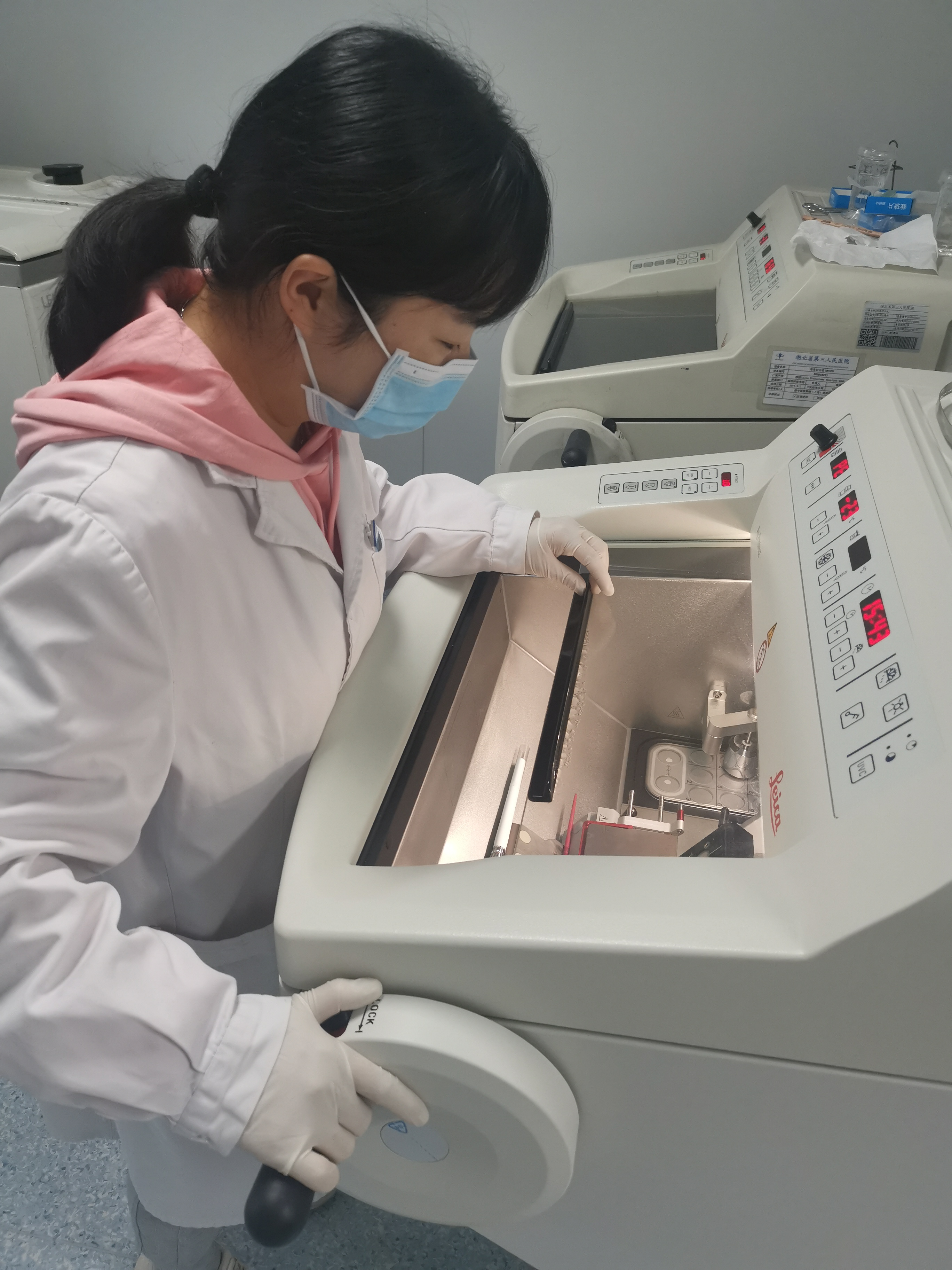 如果要做术中冰冻快速切片,手术离体标本不能固定,要马上送到病理科,放到冰冻切片机里面零下20度左右冻成硬块,制成切片用于快速诊断。从病理医师接收取材到病理技师切片、染色到送交病理医师诊断出结果,整个过程需要半个小时。