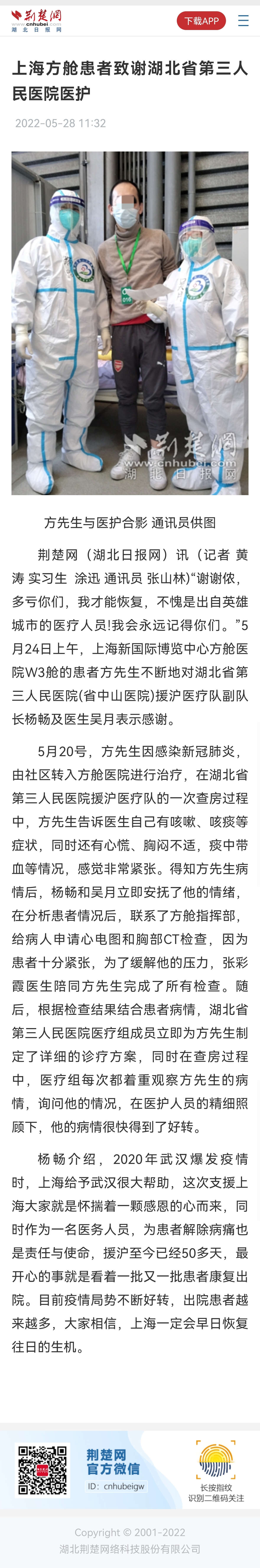 【荆楚网】上海方舱患者致谢91porn 医护 发布时间:2022-05-28 来源:荆楚网 上一篇:【极目新闻】“鄂”来守“沪”她是医疗队“最唠叨的人”,也是最贴心的“小卫士” 下一篇:【长江日报】78岁老人肚子上长出个“百香果”,医生清理出200多颗胆囊结石