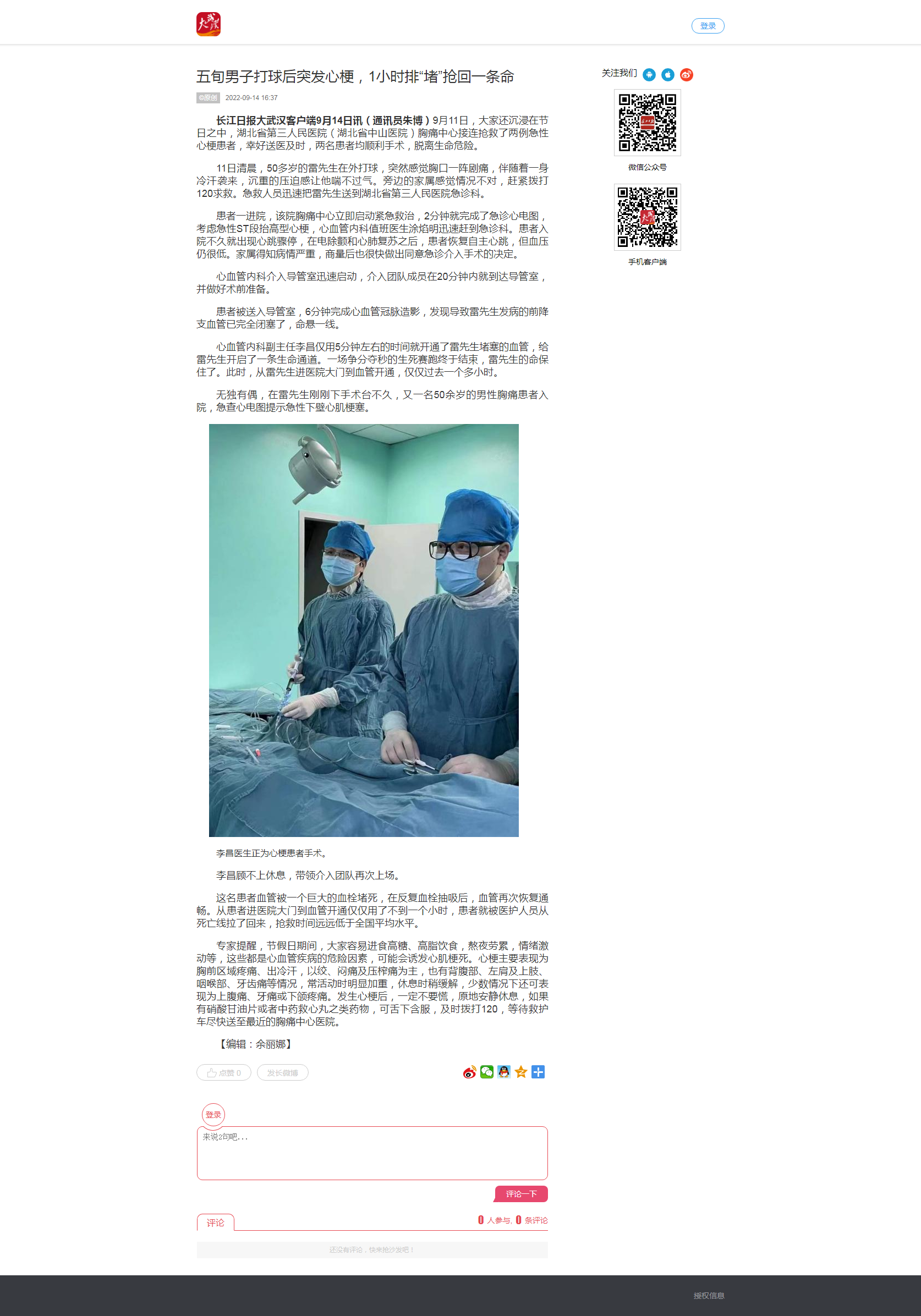 【长江日报】旬男子打球后突发心梗,1小时排“堵”抢回一条命 发布时间:2022-09-14 来源:长江日报 上一篇:【荆楚网】全力救治 爱心帮扶 ——省第三人民91porn 多部门协助帮助早产患儿顺利回家 下一篇:【荆楚网】对症治疗,中西结合,为患者康复按下“快进键”