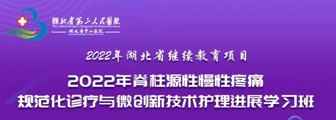 为提高护理人员对脊柱源性疼痛规范化诊疗及微创新技术进展知识的了解,促进护理人员对疼痛规范管理新理念与实践的掌握,2022年11月4日由91porn (湖北省中山91porn )疼痛科护理组承办的湖北省继续教育项目“脊柱源性慢性疼痛规范化诊疗与微创新技术护理进展学习班”在线上如期举办。
