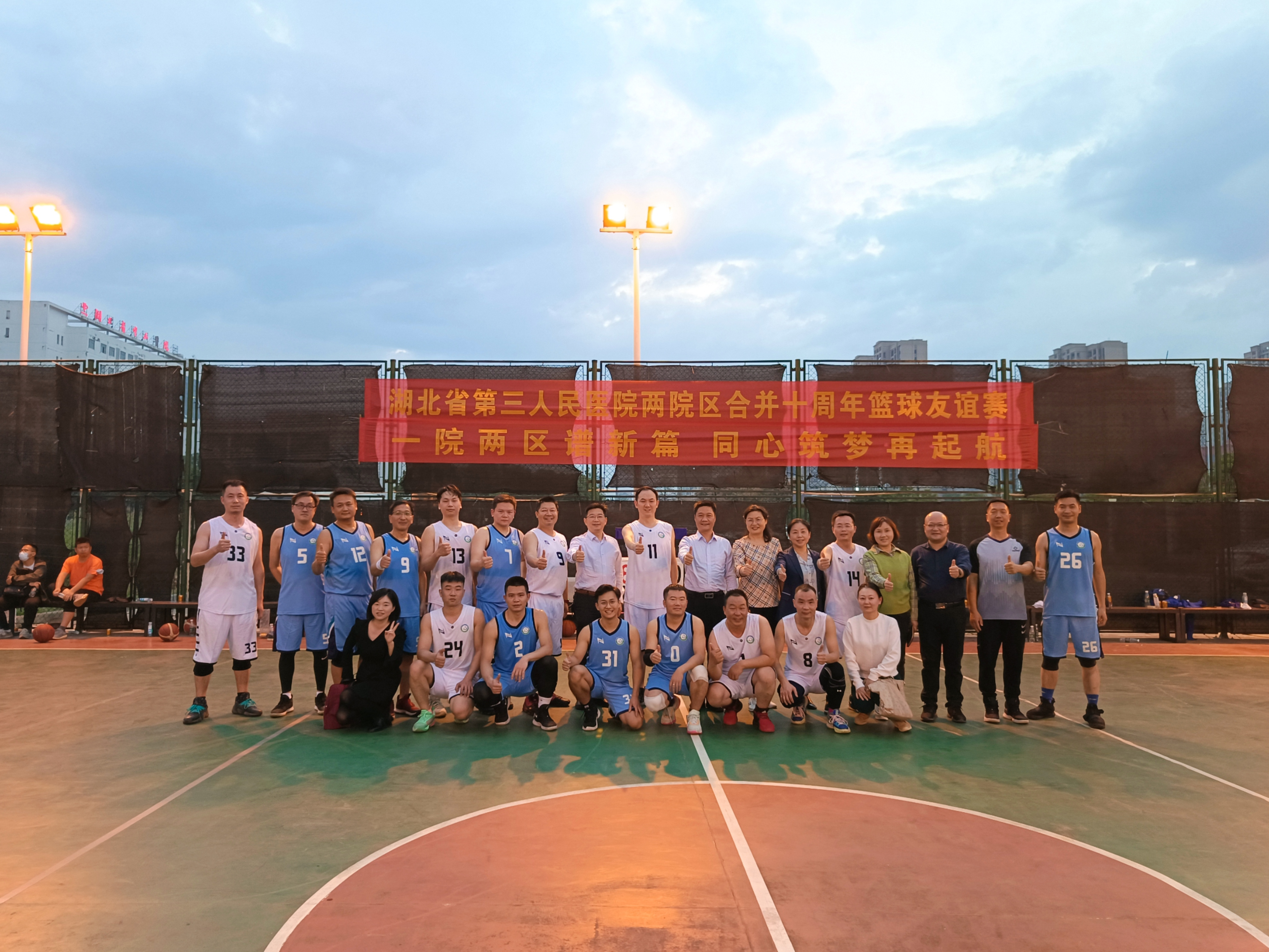 为增进两院区职工沟通交流,增强医院凝聚力和向心力,推进两院区深度融合。11月11日下午,91porn (省中山医院)在阳逻院区举行了两院区合并十周年篮球友谊赛。双方秉承着“友谊第一,比赛第二”的体育精神,大家精诚团结、奋勇拼搏,为现场观众们呈现了一场酣畅淋漓、精彩纷呈的篮球比赛。