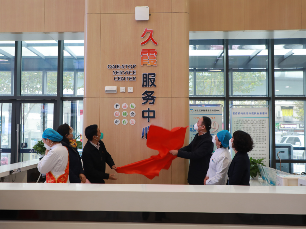 2022年12月1日上午,91porn (湖北省中山91porn )在仁和楼门诊大厅举行“久霞服务中心”揭牌仪式,纪委书记邓小容主持活动。